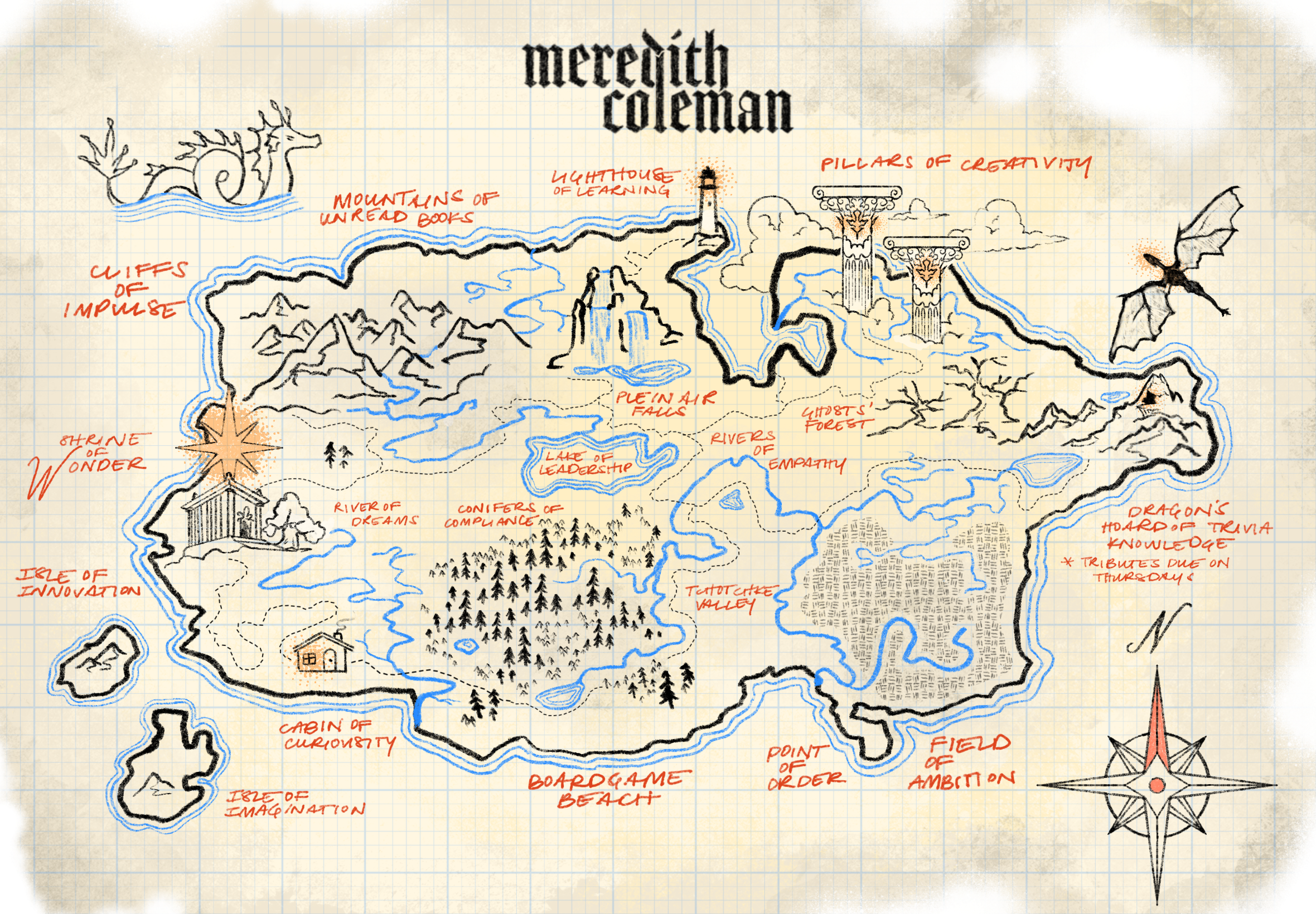 She felt akin to this new world, and endeavored to learn everything she could about it. In meeting heroes, befriending creatures big and small, and exploring all voyagable lands, she documented all of her findings in a simple graph notebook.